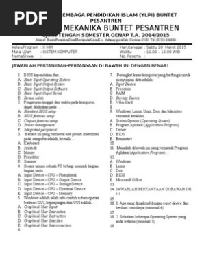 Soal Sistem Komputer Kelas X Semester 2 Dan Kunci Jawaban